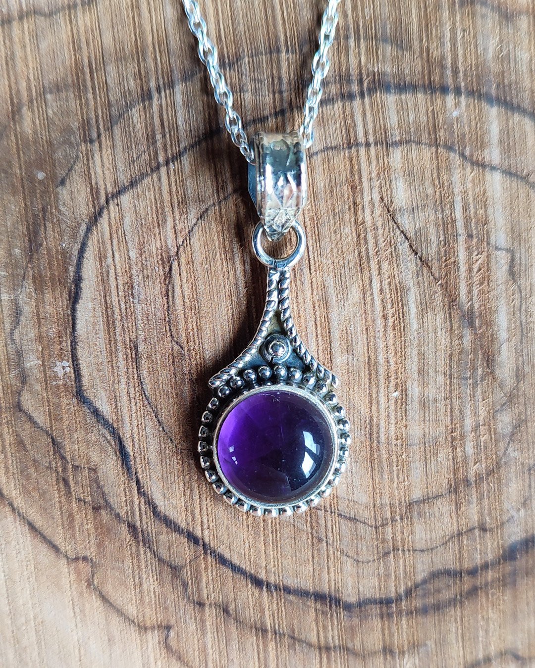 Collar de Plata de 1ªLey, compuesto por colgante con piedra natural de Amatista y cadena italiana de 45cm.
