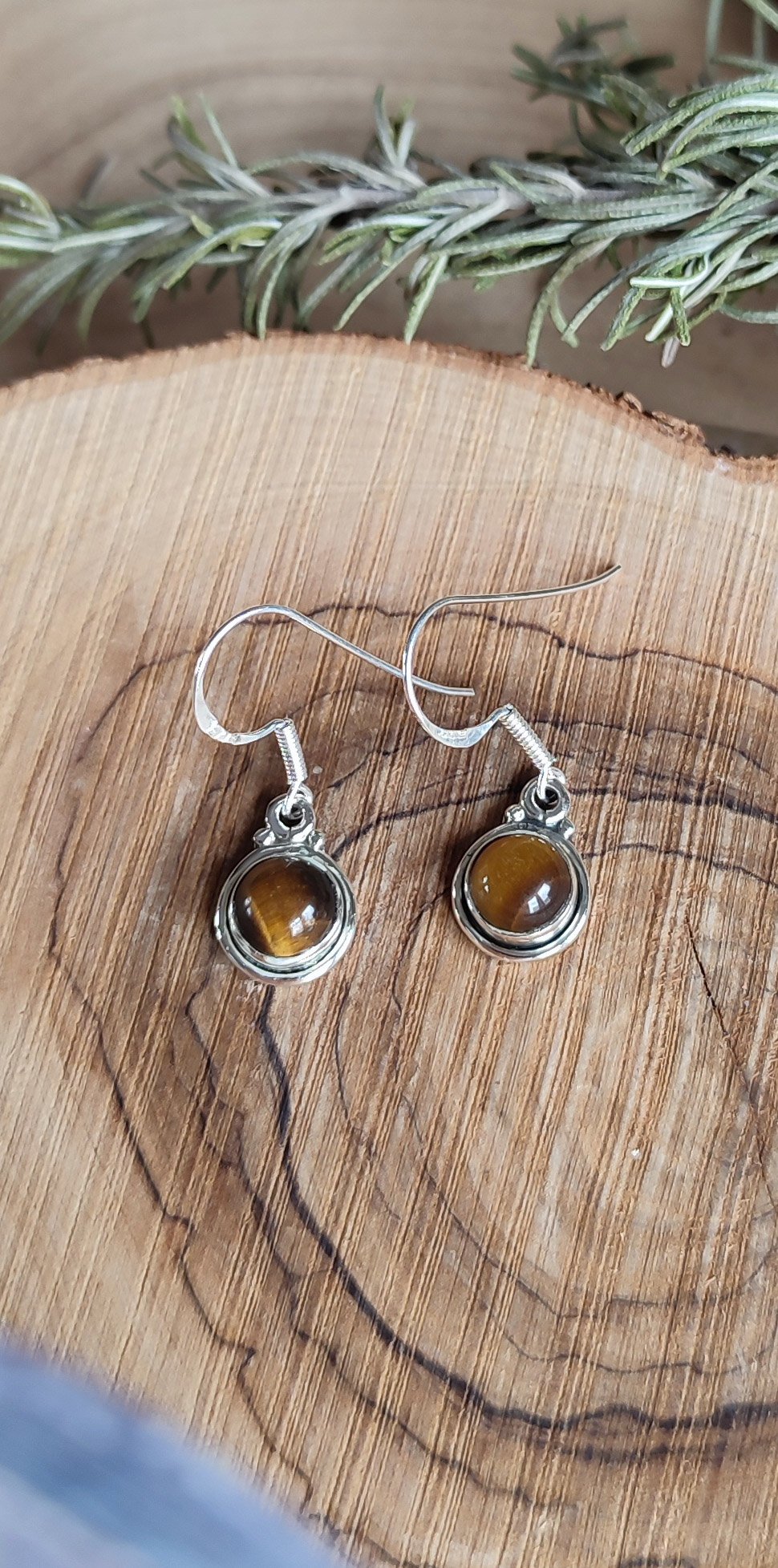 Pendientes de Plata de 1ªLey con piedra natural de Ojo de Tigre:
